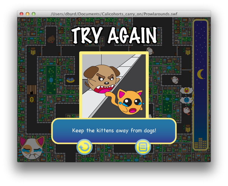 Prowlarounds currently features twenty-four levels and a warm, engaging storyline that begins in the scary back alleys of downtown and carries through to the white-picket fence of a suburban refuge.