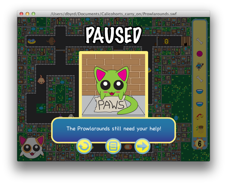 In Prowlarounds, you take the part of Calico, the leader of a gang of alleykittens who must lead them on a puzzling adventure to find their forever home! Dodge dogs, fish-baited traps, and warm sewer grates as you carefully guide your kittens with yarn, milk, catnip and more.